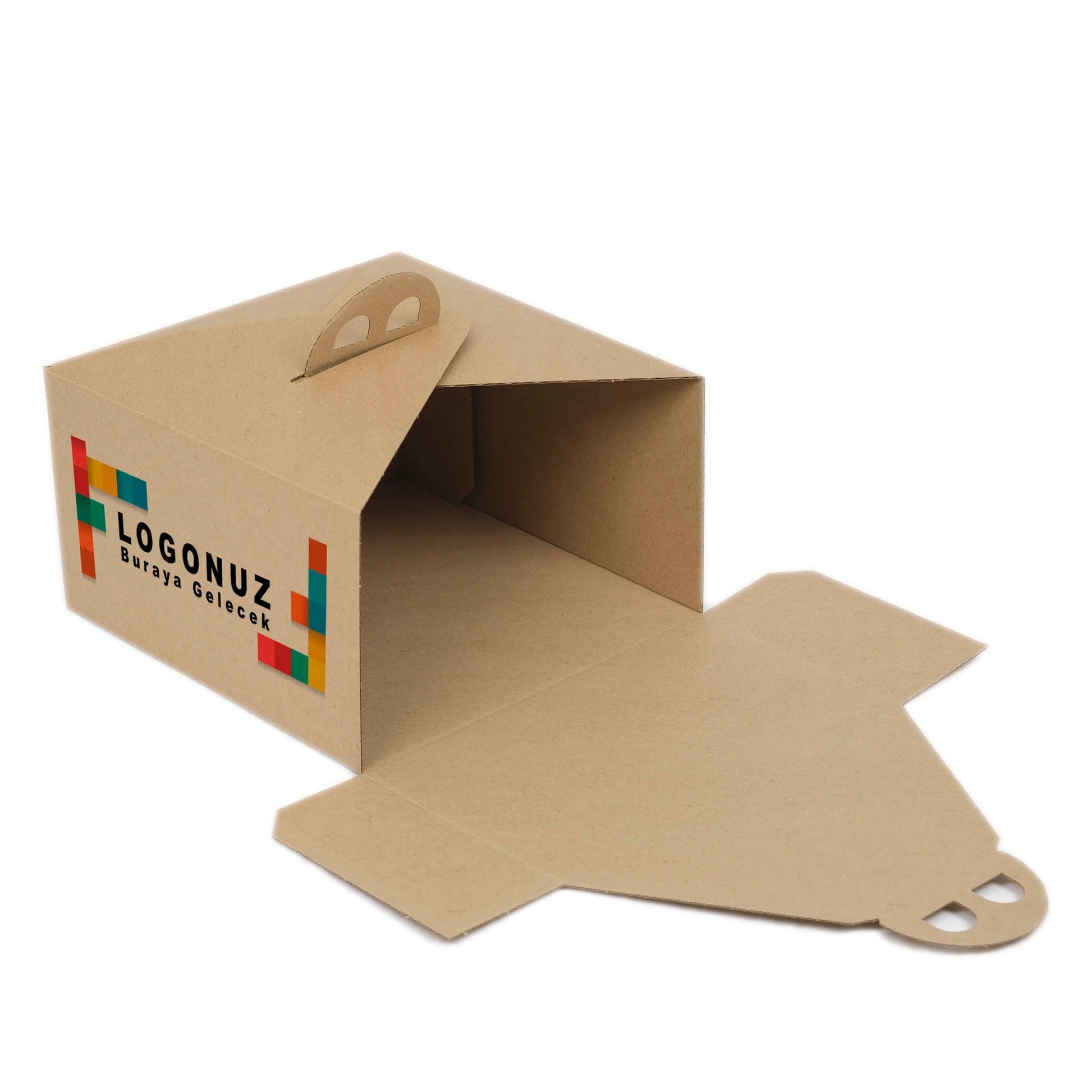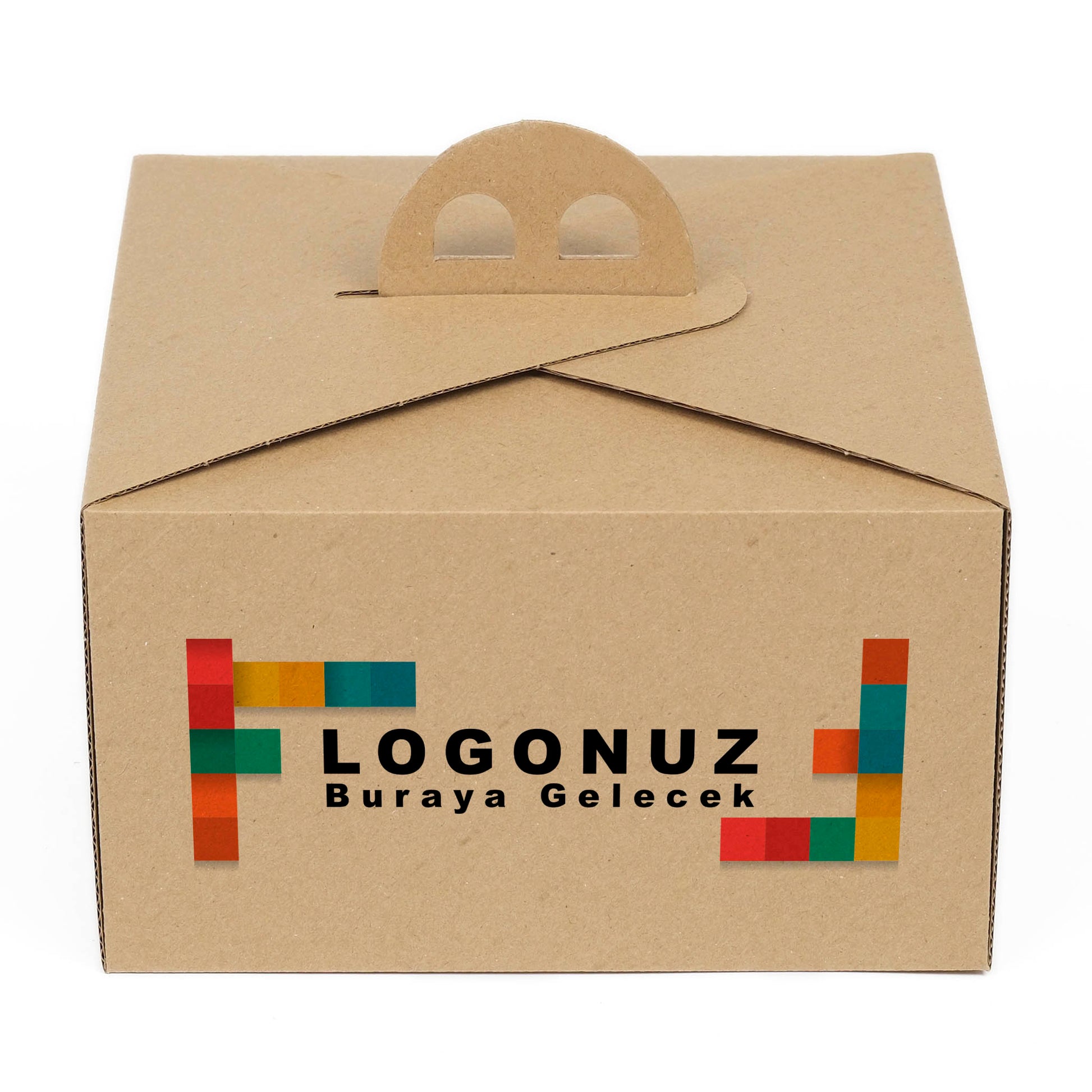 Özel Baskılı 1 No Oluklu Kraft Renk Saplı Turta Kutusu